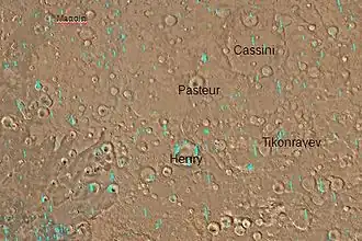 - ↑ U.S. Department of the Interior U.S. Geological Survey, Topographic Map of the Eastern Region of Mars M 15M 0/270 2AT, 1991