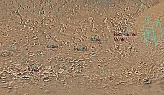 - ↑ Davies, M.E.; Batson, R.M.; Wu, S.S.C. “Geodesy and Cartography” in Kieffer, H.H.; Jakosky, B.M.; Snyder, C.W.; Matthews, M.S., Eds. Mars. University of Arizona Press: Tucson, 1992.