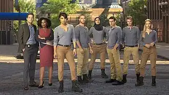 - ↑ a b c d e «Quantico Full Cast and Credits». Hollywood.com. Consultado em 8 de março de 2018. Cópia arquivada em 8 de agosto de 2017