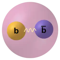 Imagem retratando um exemplo de quarkônio, o bottomônio, e sua estrutura de quarks presentes.