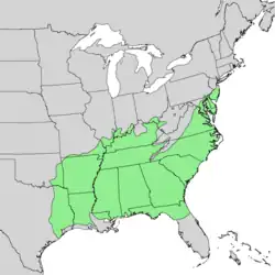 - ↑ Kartesz, John T. (2014). "Quercus falcata". County-level distribution map from the North American Plant Atlas (NAPA). Biota of North America Program (BONAP).