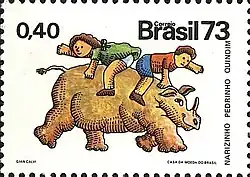 ![]() Quindim representado em um selo postal brasileiro do ano de 1973 | |