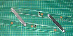 - ↑ a b Riches, D. M. (2009). «Parallel rules: Rolling and bar types». Mathematical Instruments - A private collection. Consultado em 23 de junho de 2009. Cópia arquivada em 22 de julho de 2021