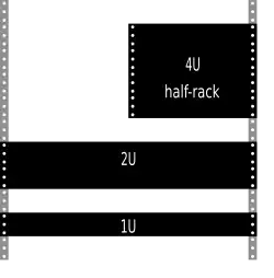 As unidades de meio rack descrevem unidades que cabem num número de U mas ocupam só a metade da largura do rack de 19 polegadas. Estas são usadas quando um elemento não exige a largura inteira do rack mas necessita mais de 1U de altura. Por exemplo, uma platina DVCAM de 4U de meio rack ocupará 4U de alto × 19/2 polegadas e, em princípio, poder-se-ão montar duas platinas uma ao lado da outra ocupando o espaço inteiro das 4U.