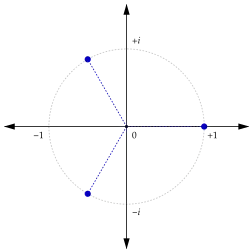 Em matemática, as raízes n-ésimas da unidade, ou números de de Moivre[1], são todos os números complexos que resultam 1 quando são elevados a n. Raízes da unidade são usadas em muitas áreas da matemática, sendo especialmente importantes para a teoria dos números, para a representação de caráter em teoria dos grupos, e para a transformada discreta de Fourier. Pode-se demonstrar que estão localizados no círculo unitário do plano complexo e que nesse plano formam os vértices de um polígono regular de n lados com um vértice sobre 1.