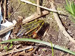 • Este artigo foi inicialmente traduzido, total ou parcialmente, do artigo da Wikipédia em inglês cujo título é «Marsh Frog», especificamente desta versão.