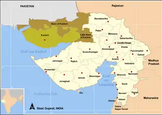 Kutch é o nome do distrito em Gujarat, onde esta região está situada. A marisma cobre uma enorme área de cerca de 10 mil quilômetros quadrados e está posicionada entre o Golfo de Kutch e a foz do Rio Indo, no sul do Paquistão. Muitos rios localizados no Rajastão e em Gujarat correm através do Rann de Kutch. Dentre eles: Luni, Bhuki, Bharud, Nara, Kharod, Banas, Sarswati, Rupen, Bambhan, Machchhu, etc.[1]
