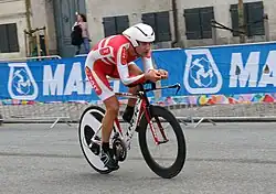 ![]() Quaade competindo Campeonato mundial de contrarrelógio sub-23, em 2011, onde conquistou a medalha de prata | |