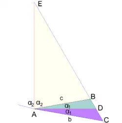 Orientando a reta BC no sentido de B para C, temos que BD e CD tem sinais opostos, enquanto que BE e CE tem o mesmo sinal: