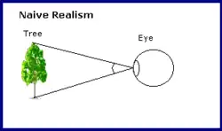 Realismo ingênuo é conhecido como realismo direto desenvolvido para se opor ao realismo indireto, também conhecido como dualismo epistemológico, a posição filosófica de que a nossa experiência consciente não é do mundo real em si, mas de uma representação interna. Nossa realidade é uma de realidade virtual, a réplica do mundo.,[3]