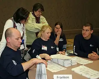 Nos Estados Unidos, as recontagens raramente revertem os resultados das eleições. Das 4.687 eleições gerais estaduais realizadas de 2000 a 2015, 27 foram seguidas por uma recontagem e apenas três resultaram em uma mudança no resultado da contagem original: eleição para governador em Washington em 2004, eleição para Auditor de Contas em Vermont em 2006 e Senado dos Estados Unidos em 2008 eleição em Minnesota .[1]