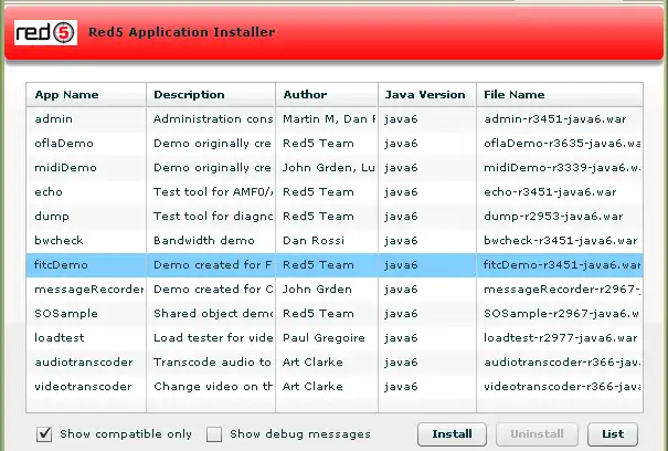 Red5 é um aplicativo de servidor RTP em código aberto para o Flash escrito em Java que suporta: