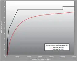 Em um sistema de imposto de renda progressivo , um trabalhador de alta renda pagará uma taxa de imposto mais alta (uma porcentagem maior de sua renda) do que uma pessoa de baixa renda; e, portanto, pagará mais dólares totais por pessoa.[14]
