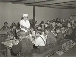 Durante o Estado Novo, a organização do fornecimento de refeições escolares era responsabilidade da Mocidade Portuguesa e da Obra das Mães pela Educação Nacional (OMEN). Na época as cantinas funcionavam com o propósito de atenuar os efeitos da pobreza e auxiliar o Estado na promoção da sua ideologia.