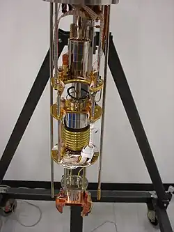 - ↑ Zu, H.; Dai, W.; de Waele, A.T.A.M. (2022). «Development of dilution refrigerators – A review». Cryogenics. 121. ISSN 0011-2275. doi:10.1016/j.cryogenics.2021.103390