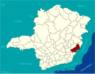 | Regiões limítrofes | Aimorés-Resplendor Carangola Caratinga Governador Valadares Ponte Nova Afonso Cláudio-Venda Nova do Imigrante-Santa Maria de Jetibá/ES Alegre/ES |