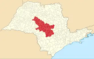 | Jaú | Bariri Barra Bonita Bocaina Boraceia Brotas Dois Córregos Igaraçu do Tietê Itaju Itapuí Jaú Mineiros do Tietê Torrinha |