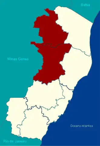 | Regiões limítrofes | Governador Valadares São Mateus Teófilo Otoni Vitória |
