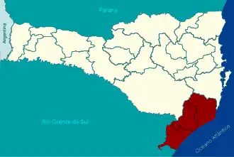 Araranguá Balneário Arroio do Silva Balneário Gaivota Ermo Jacinto Machado Maracajá Meleiro Passo de Torres Praia Grande Santa Rosa do Sul São João do Sul Sombrio Timbé do Sul Turvo |