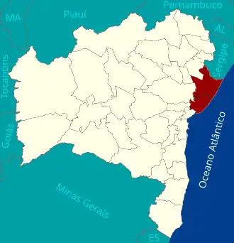 Camaçari Candeias Catu Dias d'Ávila Itanagra Lauro de Freitas Madre de Deus Mata de São João Pojuca Salvador Santo Amaro São Francisco do Conde São Sebastião do Passé Saubara Simões Filho Terra Nova |