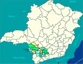 Alfenas Campo Belo Guaxupé Lavras Passos Piumhi São Sebastião do Paraíso Três Corações Três Pontas-Boa Esperança Varginha |