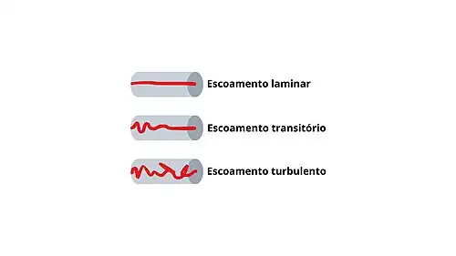 A transição entre os regimes ocorre em torno de um valor crítico do número de Reynolds, no qual as flutuações hidrodinâmicas começam a predominar sobre a estrutura laminar do fluxo. Para tubos, a transição ocorre desta forma: