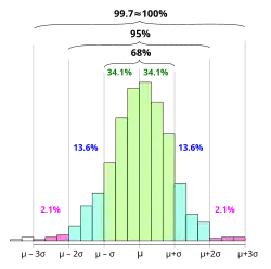 Em notação matemática, esses fatos podem ser expressos da seguinte forma, onde Pr() é a função de probabilidade, [1] Χ é uma observação de uma variável aleatória normalmente distribuída, μ (mu) é a média da distribuição e σ (sigma) é seu desvio padrão: