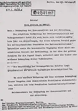 - ↑ Jörg Hutter, Die Rolle der Polizei bei der Schwulen- und Lesbenverfolgung im Nationalsozialismus, in: "Schwule, Lesben, Polizei", Dobler, Jens (HG.), Verlag rosa Winkel, Berlin 1996.