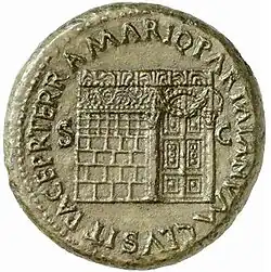 Numa Pompílio associou Jano, deus dos começos e transições, ao primeiro mês do calendário, Janeiro. Devido a suas características como divindade, a ele foram associadas diversos elementos como a luz,[200] a Lua,[201] o Sol,[202][203][204] o tempo,[205] o movimento,[206] o ano, as portas,[207][208][209]e as pontes.[210] Numa erigiu o Jano Gemino (Ianus Geminus), templo consagrado ao deus que foi ritualmente aberto em tempos de guerra e fechado quando as forças romanas descansavam,[211][212] além de uma estátua, ambos localizadas em Argileto (antiga estrada romana).[213] Especula-se que o epíteto Gêmeo (Geminus) tenha sido cunhado durante o reinado de Numa.[214][215]