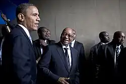 Em 2014, acredita-se que a relação entre a África do Sul e os Estados Unidos nos anos Zuma/Obama não seja tão próxima quanto era durante os anos Mandela/Clinton, mas melhorou muito desde os anos Mbeki/Bush.[24] Os anos Zuma coincidiram com a continuação do esfriamento das relações África do Sul - Estados Unidos, enquanto as relações China-África do Sul se aqueceram significativamente[25] medida que a África do Sul concentrava seus esforços diplomáticos no apoio à iniciativa do BRICS.