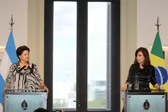 - ↑ Dilma Rousseff Makes First Trip Abroad As President to Argentina MercoPress. Acessado em 30 de novembro de 2010.