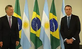 Em 2019, as relações entre Brasil e Argentina se deterioraram devido a profundas diferenças ideológicas entre o presidente de direita do Brasil, Jair Bolsonaro e o presidente de esquerda da Argentina, Alberto Fernández, principalmente devido à rejeição do brasileiro ao argentino, prova da difícil relação foi mostrado durante a posse do presidente argentino que Fernández foi eleito presidente da Argentina, derrotando Mauricio Macri. Aliado de direita de Bolsonaro, onde mostrou todo o seu apoio durante a desastrosa campanha de reeleição de Macri, onde foi derrotado pela profunda ira popular por suas políticas de austeridade e presidência ineficaz. Inicialmente, Bolsonaro anunciou que não compareceria à eleição de Fernández nem enviaria representante brasileiro, evidenciando a turbulenta relação entre as duas potências sul-americanas onde, pela primeira vez em 23 anos, não haveria representação brasileira na assunção de seu principal aliado comercial, colocando em risco a continuidade da organização do Mercosul, já quase inexistente devido à suspensão da Venezuela durante o governo de Nicolás Maduro. Dias depois, ele decidiu enviar o vice-presidente brasileiro, Hamilton Mourão, como representante. Outra causa da antipatia entre cada presidentes são as relações entre os seus filhos, o filho de Fernández é conhecido na Argentina como um cosplay e progressista liberal, enquanto os filhos de Bolsonaro são conservadores.