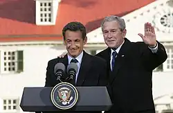 - ↑ «Sarkozy Welcomed Warmly by Congress». The New York Times. 7 de novembro de 2007