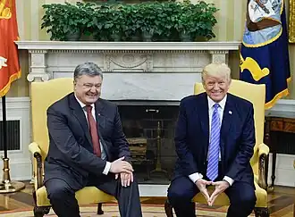 Durante a primeira presidência de Donald Trump, em 8 de junho de 2017, lançou-se um artefato explosivo na embaixada dos Estados Unidos em Kiev, e em dezembro do mesmo ano, os Estados Unidos concordaram em fornecer a Ucrânia armas mais destrutivas, incluindo mísseis antitanque Javelin, resultando em um protesto diplomático na Rússia.[7][8]