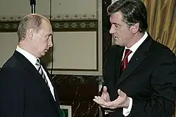 Embora as disputas antes da eleição presidencial ucraniana de 2004 estivessem presentes, incluindo as especulações sobre o abate acidental de um avião russo pelos militares ucranianos e a controvérsia com a Ilha de Tuzla, as relações com a Rússia nos últimos anos de Leonid Kuchma melhoraram. Em 2002, o governo russo participou do financiamento da construção das centrais nucleares de Khmelnytskyi e Rivne.[23] Em 2003, a Rússia tentou integrar a Ucrânia em um novo Espaço Econômico Único liderado pela Rússia. No entanto, com o presidente Viktor Yushchenko no poder, vários problemas reapareceram, incluindo as disputas de gás entre a Rússia e a Ucrânia, devido à crescente cooperação da Ucrânia com a UE e à oferta de adesão à OTAN.