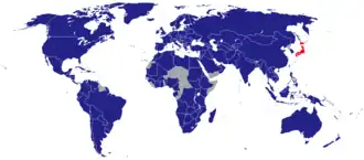 O Japão mantém relações diplomáticas plenas com cada um dos Estados-membros das Nações Unidas (excetuando Coreia do Norte) e com Santa Sé, Kosovo e Ilhas Cook.