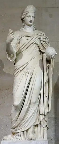 Minerva á a padroeira das artes e dos artesãos. O nome é provavelmente itálico (derivado de "men", que designa toda e qualquer atividade do espírito).[6] Os romanos a receberam por intermédio dos etruscos, mas já na Etrúria, Menrva (Minerva) representava uma adaptação de Palas Atena.