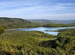 A vegetação está formada por bosque e matorral mediterrâneos, ainda que em algumas zonas aparecem também pinheiros e eucaliptais de repopulação.