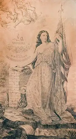 Após a independência do Uruguai, entre 1830 e 1930 — antes que a imagem de José Artigas juntamente com a bandeira e o brasão, se tornassem os principais símbolos do país — a figura feminina de uma deusa vestindo uma toga e um barrete frígio era o ícone que simbolizava a livre e estabelecida República Oriental do Uruguai. A alegoria foi inspirada em imagens originárias da Atenas e Roma antigas, que foram reinterpretadas durante a revolução na França e nos Estados Unidos e adquiriram variações em várias repúblicas americanas, bem como no Uruguai.