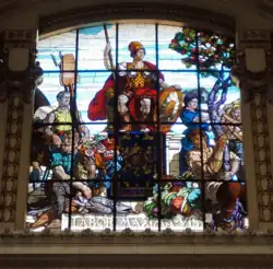 O frontão do Palácio Legislativo apresenta ao seu centro uma Alegoria da República, com o brasão nacional aos seus pés e rodeado por figuras alegóricas relacionadas com o trabalho e a riqueza nacional, remete às composições predominantes nos tímpanos dos templos clássicos ao mesmo tempo que sintetiza o conceito de nação que procura exaltar.[3]