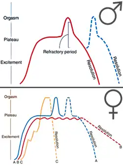Na resposta sexual humana, segundo o modelo multifásico de Masters e Johnson[1] e Helen Kaplan, temos que “cada componente é anatomicamente distinto, e cada componente, se inibido, provoca síndromes clínicas distintas”. Divide-se nos seguintes estágios: