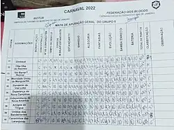 - ↑ «LIGA RJ divulga justificativas das notas dos julgadores para o carnaval 2022». Liga RJ. 29 de abril de 2022. Consultado em 28 de maio de 2022. Cópia arquivada em 28 de maio de 2022