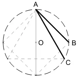 - Trace AC = AB = diâmetro da circunferência
