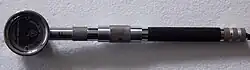 A frente de onda emitida pelo retinoscópio é em formato de fenda. A luz refletida pela retina passa através do orifício da íris ("pupila").