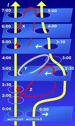 - ↑ Boyle, Alan (21 de novembro de 2006). «Time-travel physics seems stranger than fiction». MSNBC. Consultado em 19 de dezembro de 2006