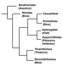 - ↑ Maderspacher, F. (2017). «Evolution: Flight of the Ratites». Current Biology. Consultado em 21 de outubro de 2018