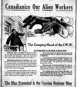 - ↑ «Canadian labour history, 1850-1999 - 1919: radical solutions». www.historymuseum.ca. Consultado em 21 fev 2021