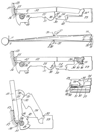 O mecanismo de bloqueio da culatra foi feito em três partes. De frente para trás, elas eram: