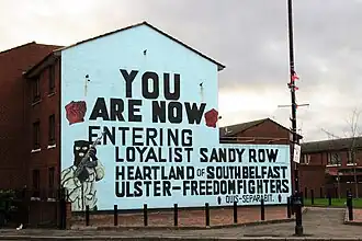 Mural da Força Voluntária do Ulster em Belfast; Mural da rival Associação de Defesa do Ulster na área de Sandy Row, sul de Belfast | ||||