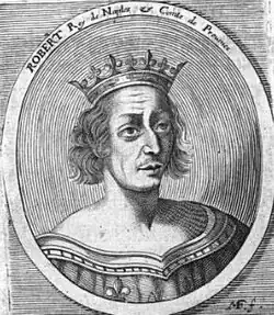 - ↑ Em 1257, o avô de Roberto, Carlos I da Sicília, tinha adquirido os direitos sobre o trono do reino de Arles.